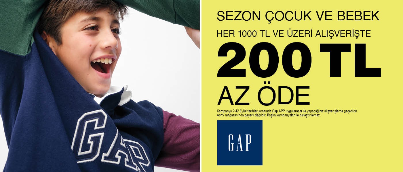 GAP sezon çocuk ve bebek ürünlerinde her 1000 TL ve üzeri alışverişte 200 TL az öde !